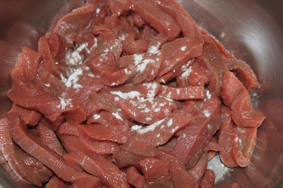 Couper finement le bœuf. Pour cela, on peut le mettre au congélateur une heure pour le rendre plus facile à découper.