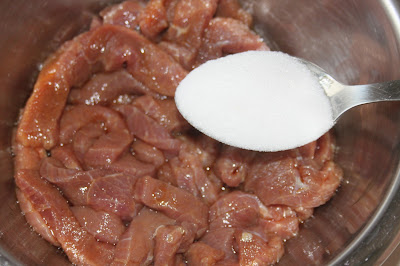 Ajouter une cuillerée à soupe d'eau et bien malaxer la viande pour répartir de manière uniforme le bicarbonate pour qu'il agisse partout.