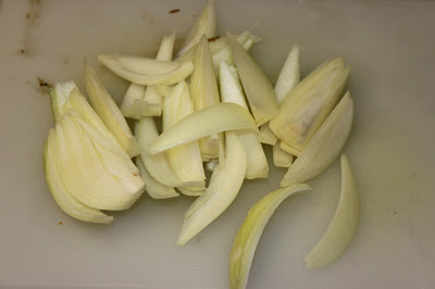 Couper les oignons en tranches.